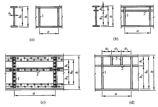 中间横向加劲肋较大(\(h_0\))和不设中间横向加劲肋的腹板,当满足公式(6.4.3-1)时,可取\(h_0\)。
